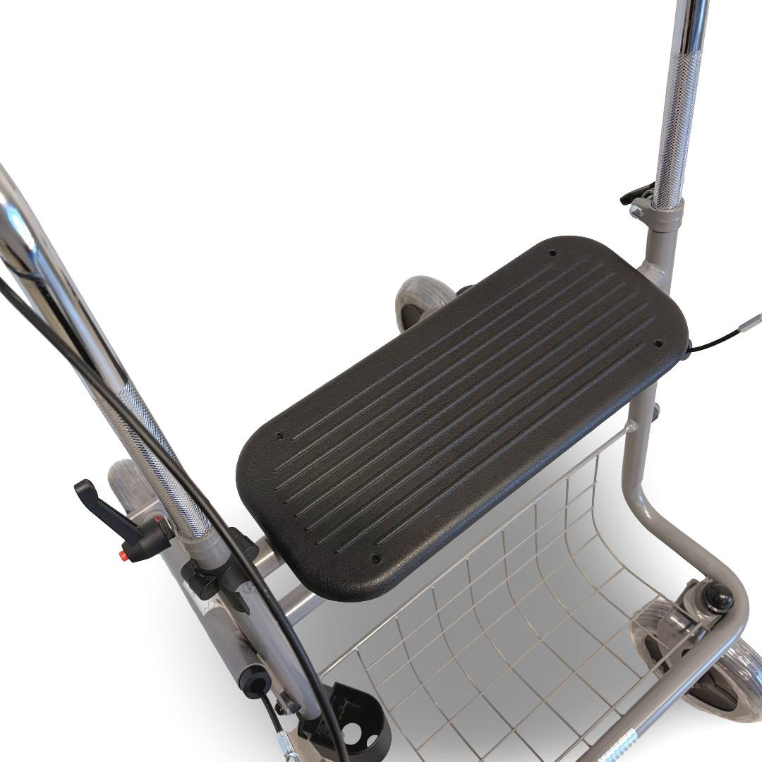 - Le système de freinage, efficace et accessible, garantit une maîtrise parfaite du rollator.