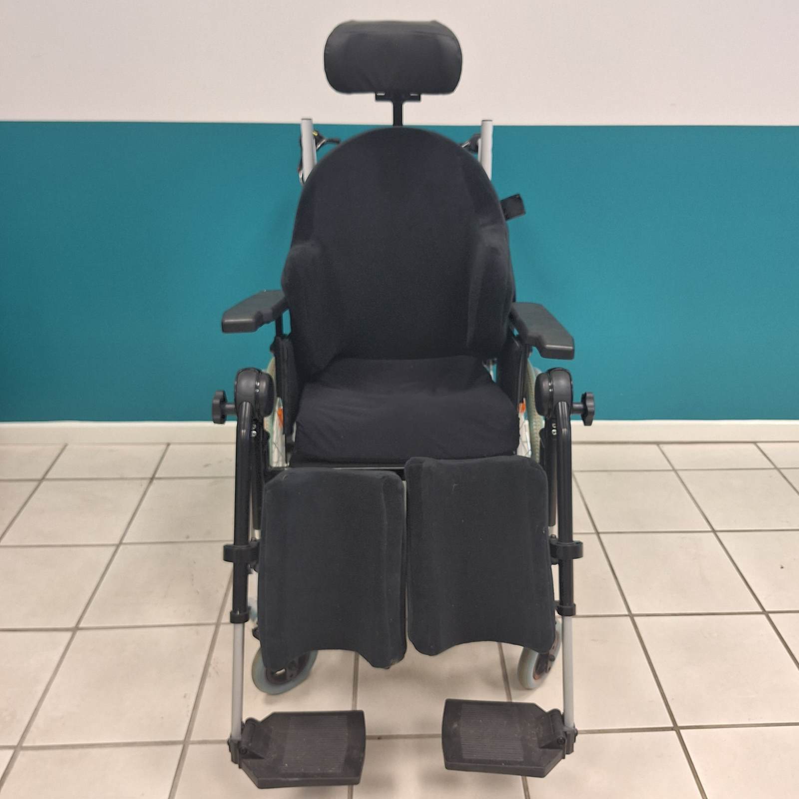 Le fauteuil roulant confort Weely Original de Rupiani est un modèle reconditionné conçu pour les personnes nécessitant un haut niveau de stabilité et des changements de position réguliers.